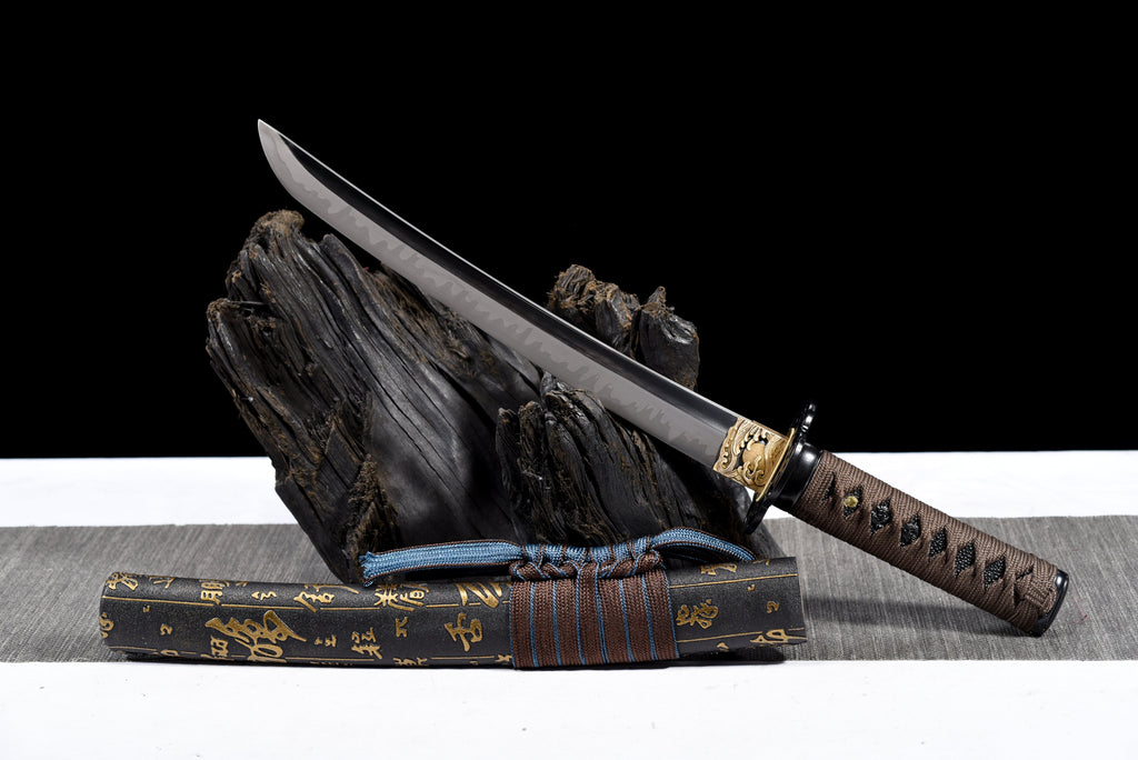 Il Tantō Kurogane 黒金短刀 è una lama corta giapponese magistralmente realizzata, forgiata con precisione e intrisa di arte tradizionale. Compatto ma potente, il tantō era storicamente portato dai samurai come arma di riserva, apprezzato per la sua versatilità nel combattimento ravvicinato.